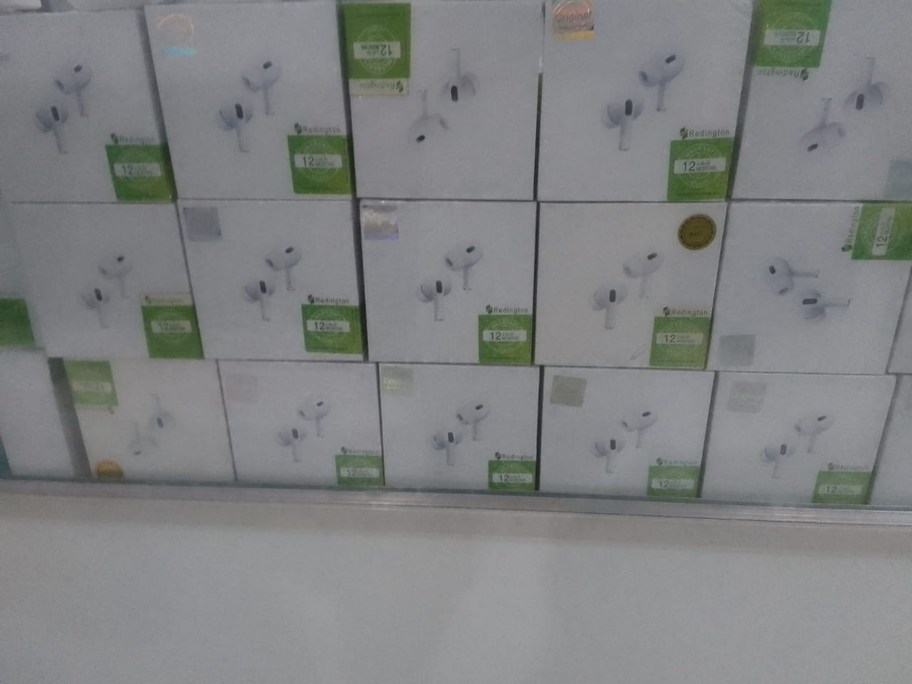 Yeh image wireless Bluetooth earbuds (AirPods-style) ki lagti hai — box par “Redington 12 Months Warranty” aur “ANC” (Active Noise Cancellation) ka sticker bhi nazar aa raha hai.